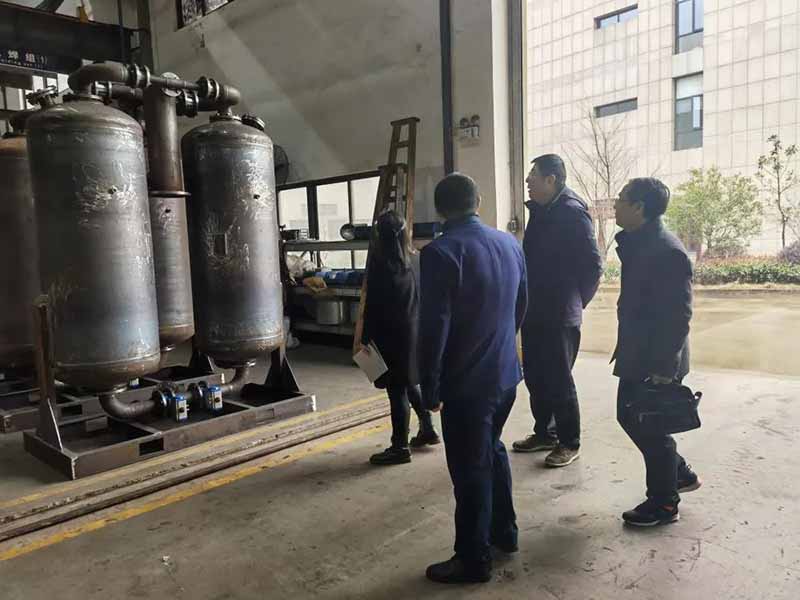技术室主任朱影对公司产品领域、技术优势做了详细介绍。sunbet申搏官方网站具有强大的产品研制、设计与开发能力,在消化吸收先进技术的基础上,结合实际工况特点,研制成功的sunbet申搏官方网站牌空气净化设备是各类有油、无油空气压缩机的合作伙伴。产品有冷冻式压缩空气干燥机、吸附式压缩空气干燥机、吸附式压缩空气干燥机、组合式低露点压缩空气干燥机、压缩空气过滤器、自洁式空压机吸气过滤器、压缩空气预冷机组、油水分离器、高效除油器、后冷却器等多个规格产品。可根据用户需要,提供风冷、水冷、标准、无氟、高温、仪表、单片机、可编程、工控机、变频控制、高压、防爆等多种型式与特点的压缩空气净化设备。产品露点范围:10℃~-70℃,处理量:0.5~600Nm3/min,出口含油量:10PPM~0.003PPM,出口含尘粒径:3um~0.01 um。产品广泛应用于电力、造船、航天、电子、冶金、机械、汽车制造、石油、化工、纺织、、轻工、造纸、橡胶、仪表、食品、空分、卷烟、医药、生物、日化等行业。