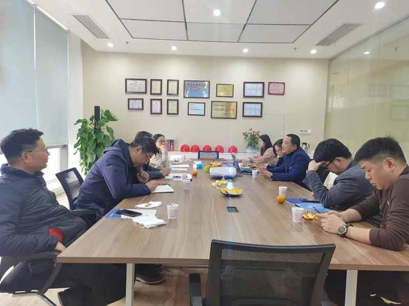3月5日,杭州市节能协会秘书长包优祥、浙江安耐杰科技股份有限公司总经理助理许华丽、杭州倍捷科技有限公司总经理金磊、杭州三瑞机械有限公司总经理邢超、浙江匠心智联软件技术有限公司总经理王坚华前往sunbet申搏官方网站进行走访交流。公司销售总监唐绍宏、销售总监助理彭欢、技术室主任朱影、研究院经理洪川和相关部门负责人员陪同参观并参加座谈交流。